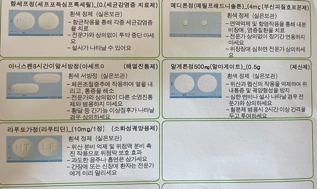 그리고 처방받으신 약은 아침, 저녁 식후에 복용하고 씬지로이드는 공복에 1가지약만 드셔야하고 칼슘, 비타민D는 식후에 드셔야해요.