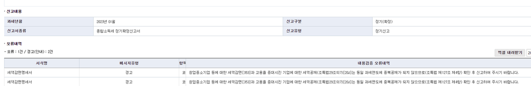 22년도 이월분부터 공제를 받았는데 저런 경고문이 떠서 문의드립니다.