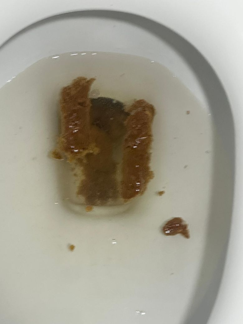 사진 속 변은 다소 기름지고 물에 잘 가라앉지 않는 모습이 보이는데 이런 경우는 흔히 지방변(steatorrhea)의 특징일 수 있습니다. 지방변은 변이 기름지게 보이거나 물에 둥둥 뜨고, 냄새가 나고, 설사가 반복되는 양상이 함께 나타나는 경우가 많습니다. 이는 지방 흡수에 문제가 있을 수 도 있습니다. 기름진 음식을 과하게 드셨을 경우도 있구요.
