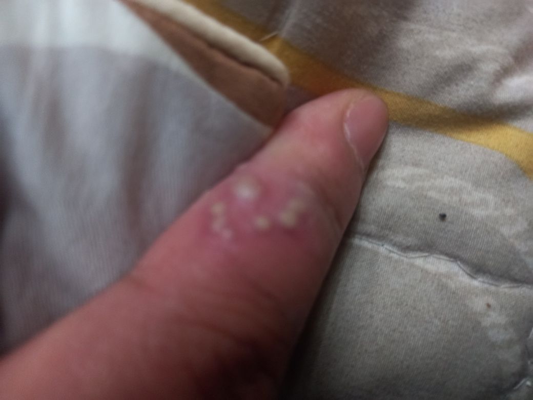 손가락의 염증이 의심되는 병변입니다. 가까운 피부과에서 진료를 보시기를 강하게 권장드립니다.