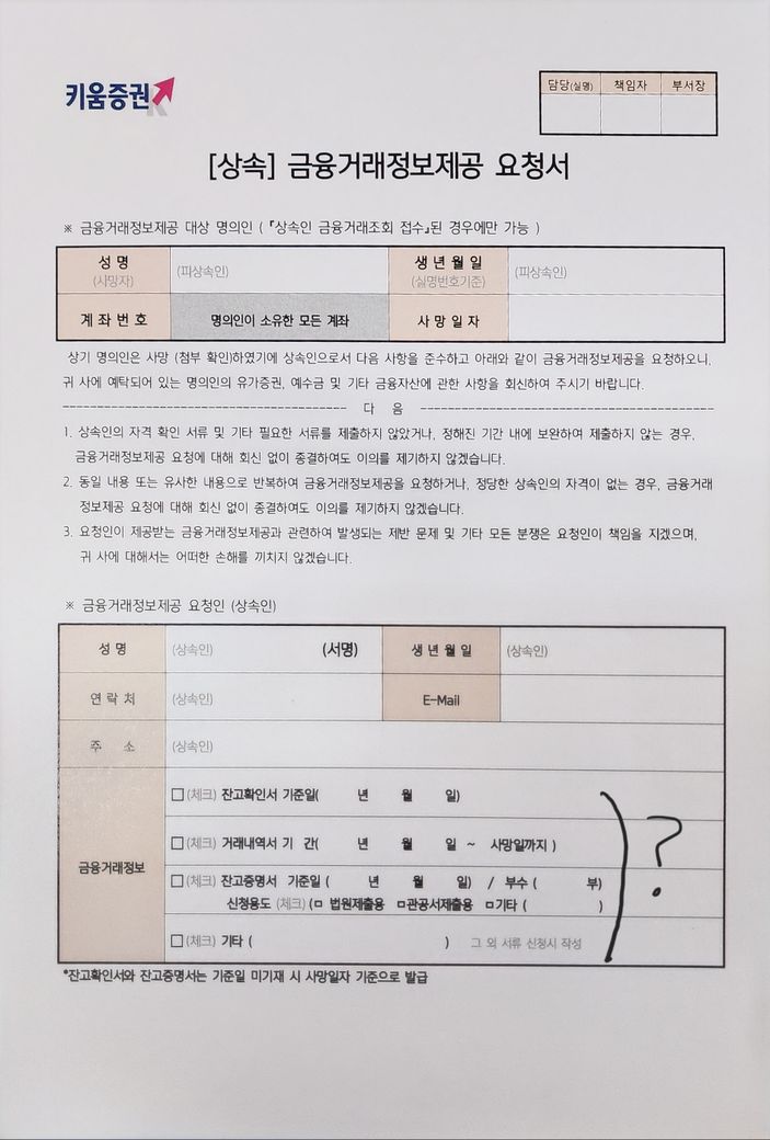 상기의 금융거래정보 요청서의 1)잔고확인서 기준일은 피상속인의