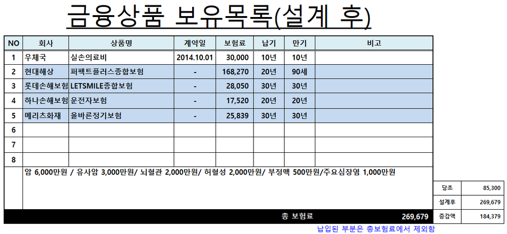 특히, 30대 후반 남성에게 종합보험은 H사를 권장하지 않습니다..^^
