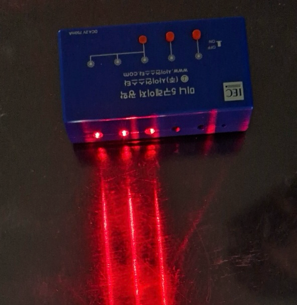 레이저 빔이 눈에 들어오면 세로줄이 생기는 것처럼 보입니다.