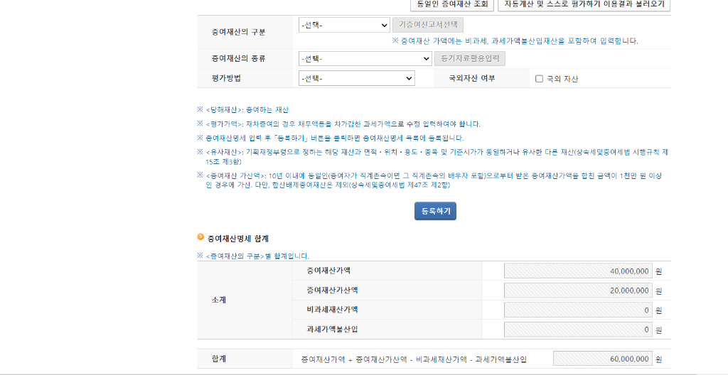 비과세재산가액과 과세가액불산입은 기재하지 않습니다. 기재하신 것처럼 신고하시면 됩니다. 추후에 기납부세액에서 100만원도 기재하셔야 합니다. 금액을 잘 확인해보시길 바랍니다.