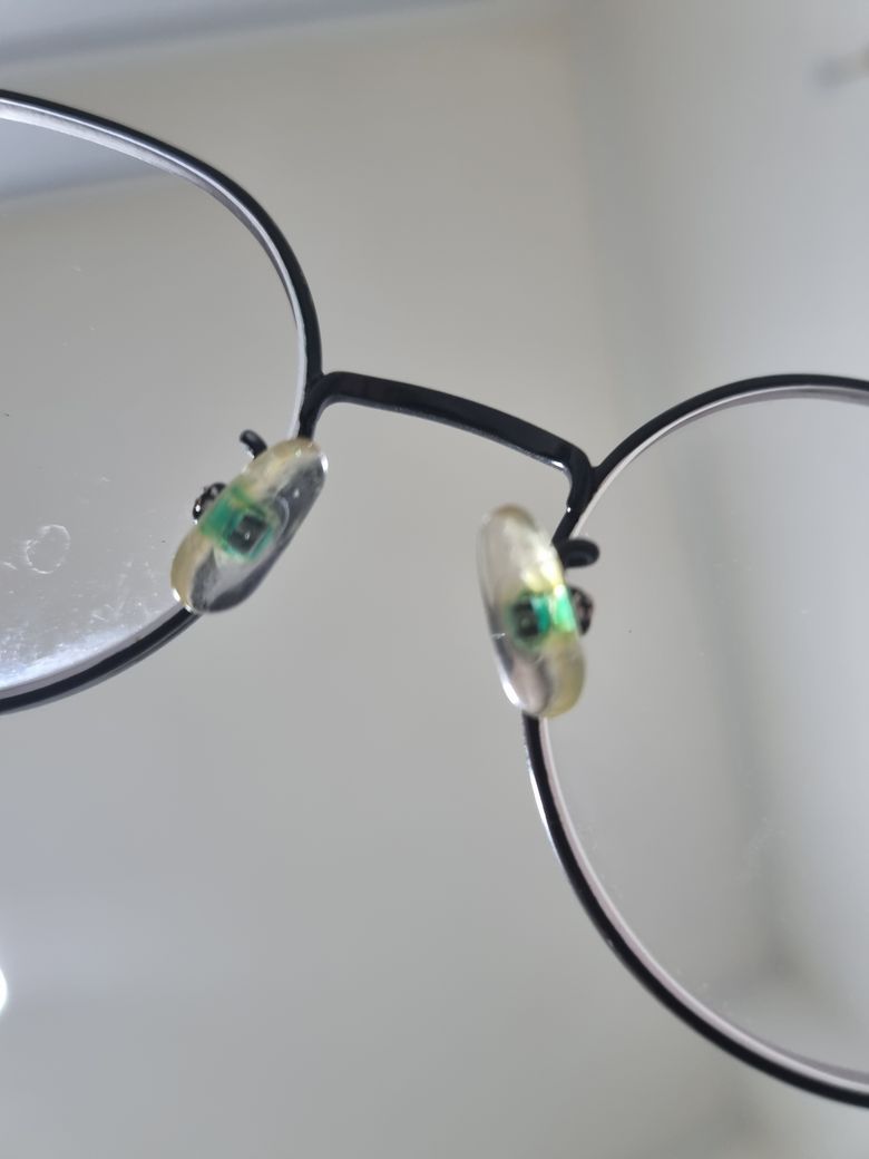 저런 초록색 부위는 피부에서 나오는 지성 기름을 오랫동안 닦지않았을 때 착색되앋마 발생합니다. 때기름일 가능성이 높으니 물로는 안지워지고, 알콜이나 스티커로 살짝 묻혀서 닦아보세요. 그래도 닦이지 않는다면 안경점에 문의하며 해당 부위를 교체하는 방법밖에는 없습니다(높은 확률로 금액을 지불해야할 것입니다)