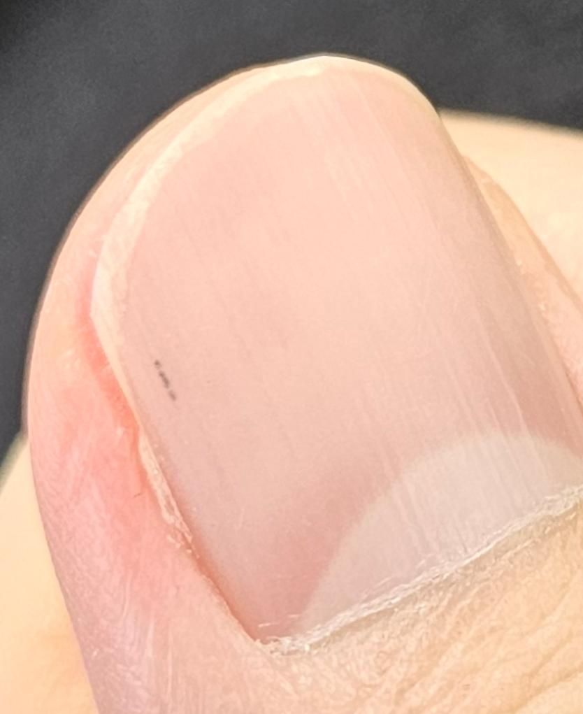 오늘 우연히 엄지손톱에서 까만 작은 선을 발견했습니다. 손톱밖에 생긴건 아닙니다. 꼭 가시가 들어있는것처럼 생겼는데 흑색종일까요? 뿌리부터 줄이 생겨야만 흑색종인지...