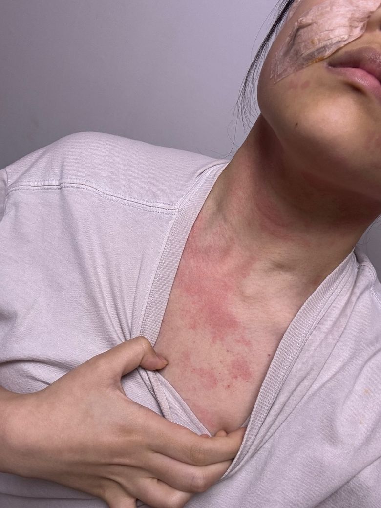 금요일 낮에는 또 아무렇지 않고 괜찮다가 저녁 11시부터 갑자기 얼굴부터 무릎 부분까지 빨갛고 뜨거워요. (점점 빨간 부분이 확장됨)