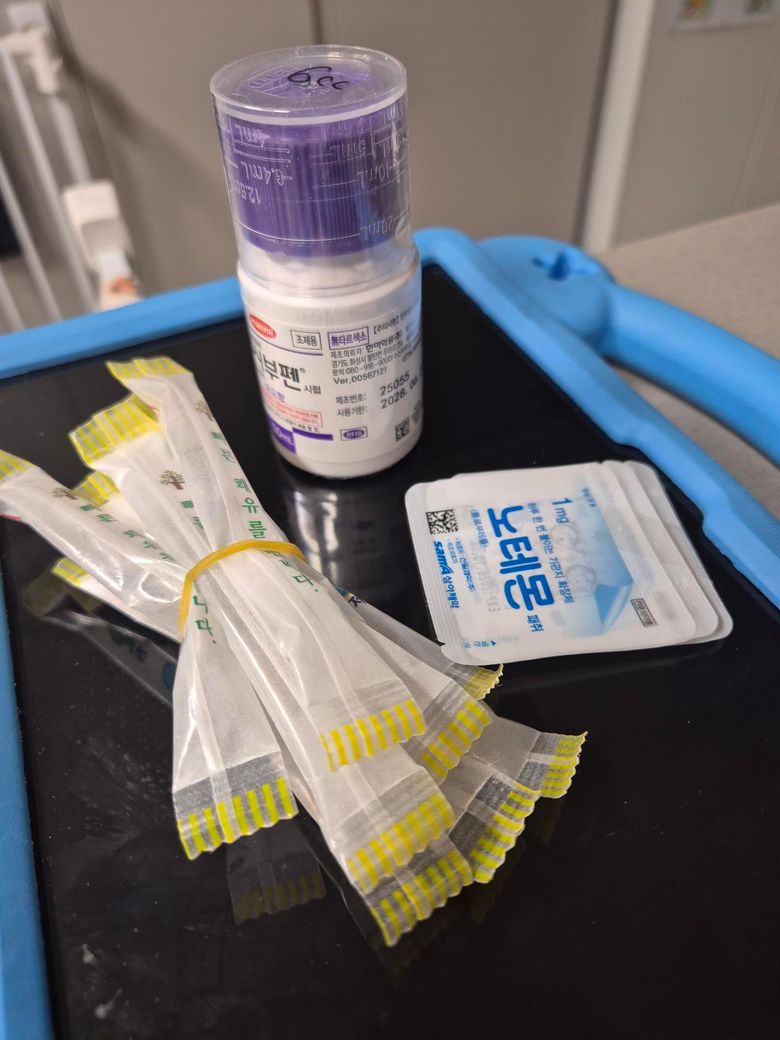 결과적으로 엑스레이 촬영하고나서 기관지염 초기 증상이라고 하셔서 약처방은 기존거에 추가로 해열제 들어있는 가루약과 멕시부펜 두가지 처방해서 집에 왔는데요.
