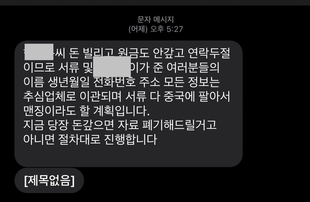 전 회사 동료의 대출업자가 문자로 개인정보를 판매한다고 협박을 했어요.