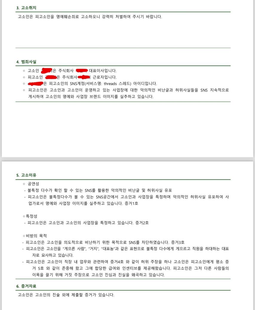 여튼 저는 제 개인 공간에 그런 글을 올린게 고소감이라고 생각되지 않습니다. 직장인이라면 흔한 일 아닌가요. 여튼 대표님을 특정짓게 하는 표현이나 성함을 밝히지 않았고 사업장 이름도 밝히지 않았습니다.