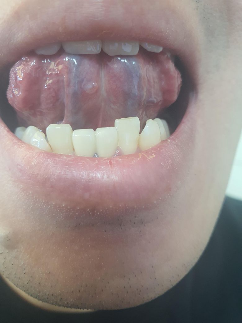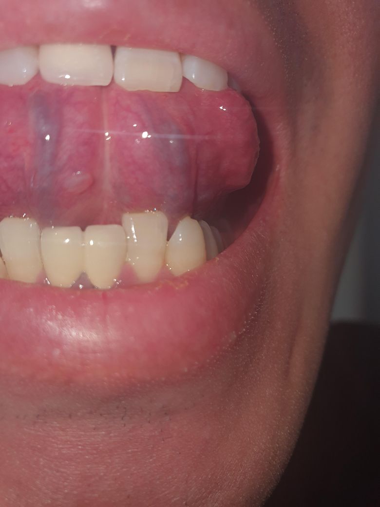 사진으로 보이는 부분은 정맥 혈이 지나가는 부분으로 보입니다 크게 문제가 되는 것은 아니기 때문에 따로 병원에 가시거나 할 필요는 없습니다 걱정이 되신다면 자세한 확인을 위해서 치과에서 진료를 받아 보는 것을 권해 드립니다