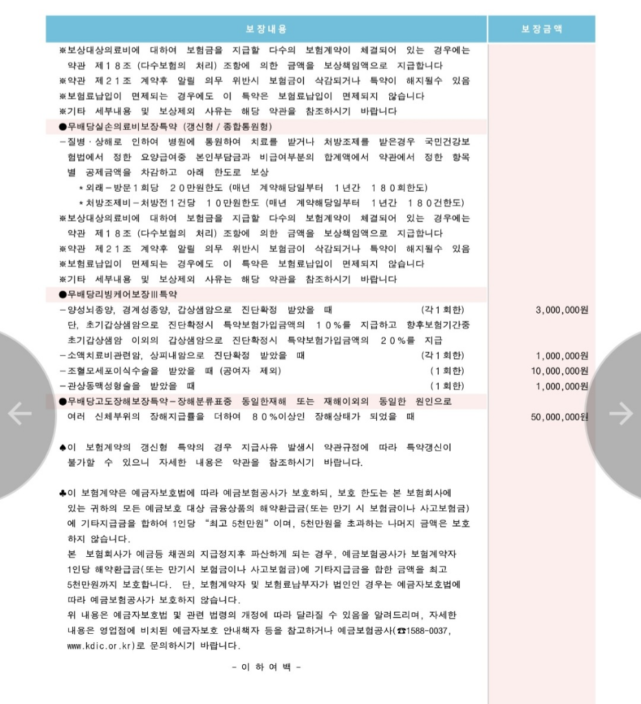 사실 사망과 재해보장이 아닌 다른 것은 갱신형보험으로 실비가 2세대 인것 말고는 장점이 별로 없는 보험으로 보입니다.