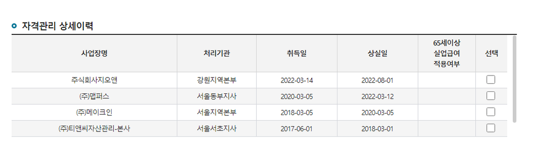 고용보험 자격관리 상세 이력서