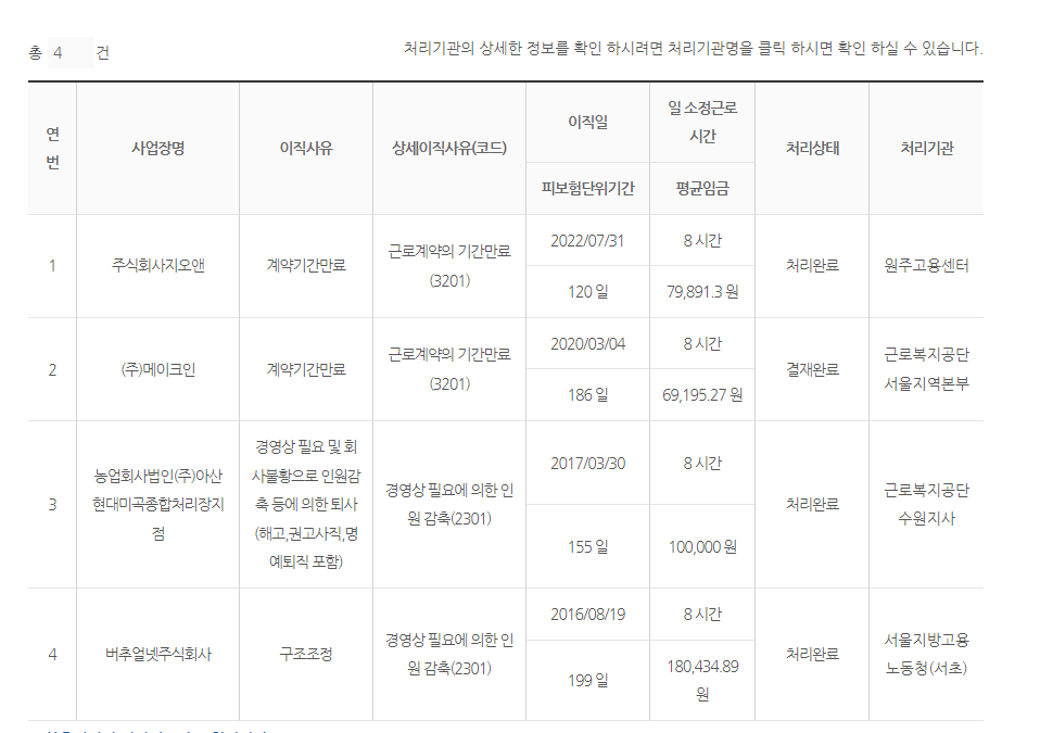 고용보험에서 아래와 같이 이직확인서와 고용보험 가입 내역을 확인했는데 실업급여 신청이 가능한가요.