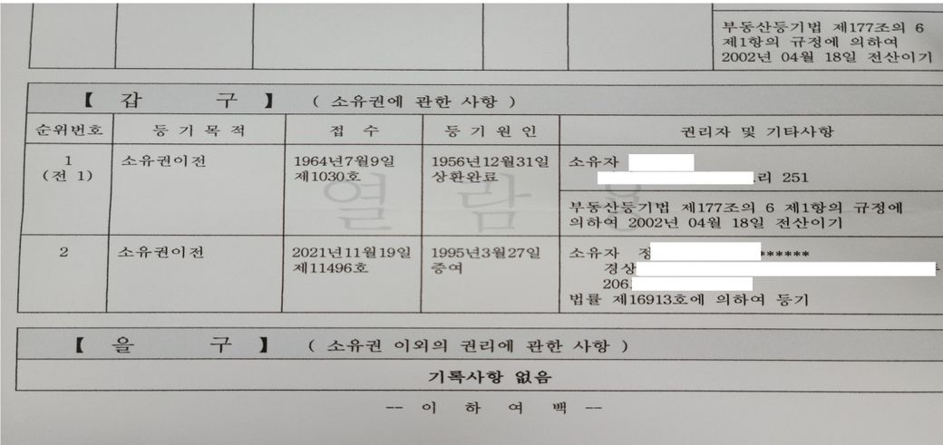 2. 2021년 11월 19일 날짜로 등기를 완료했습니다