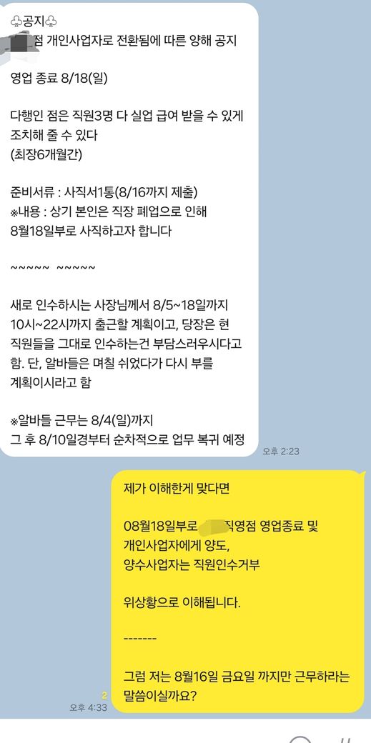 1. 위 사진상의 카톡내용으로도 해고라는게 증빙이되나요?