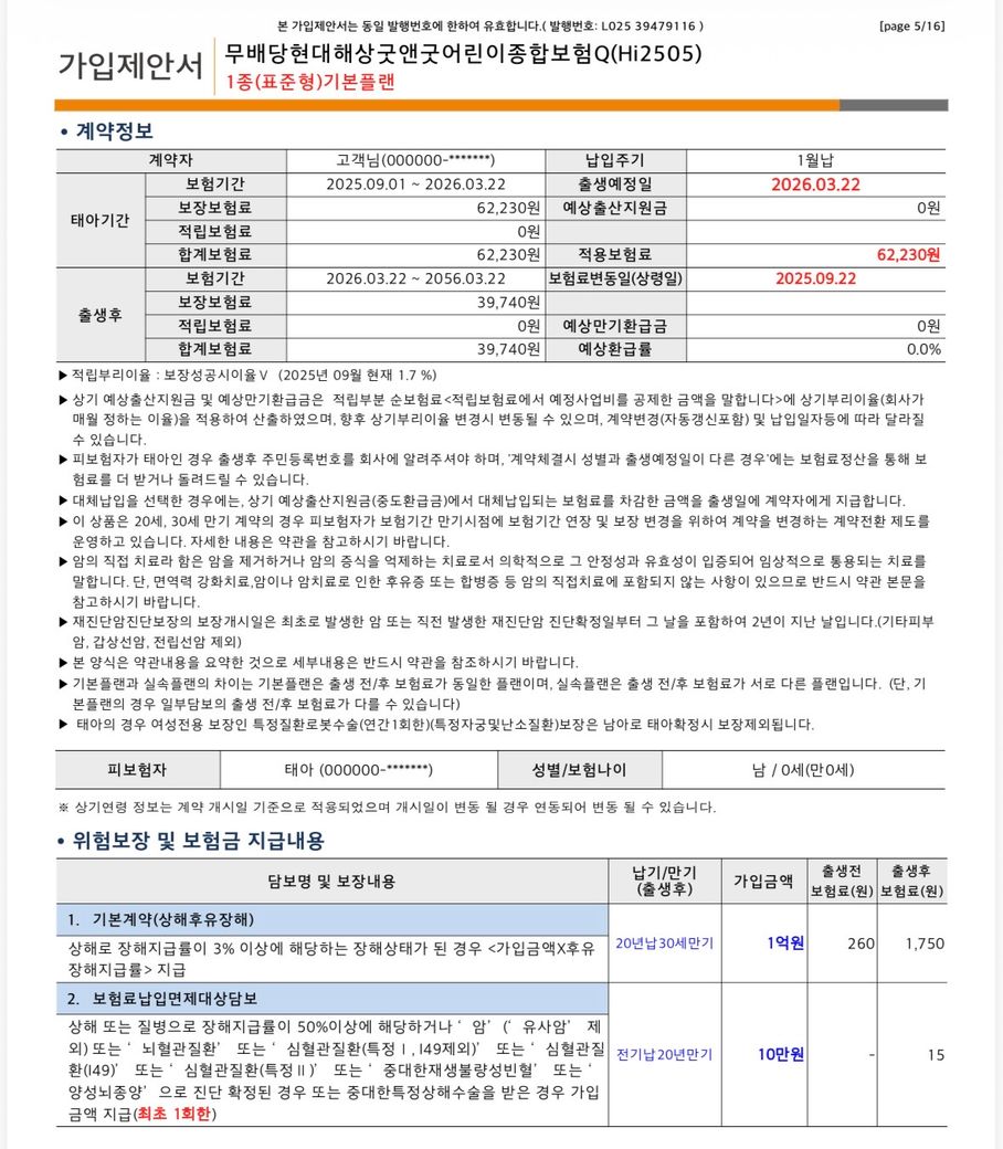 태아보험 가입하려는데 항목 추천부탁드립니다