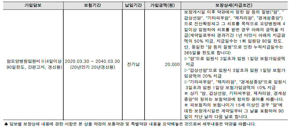 일반 표준체 암보험 상품에 가입을 하셔야 비갱신으로