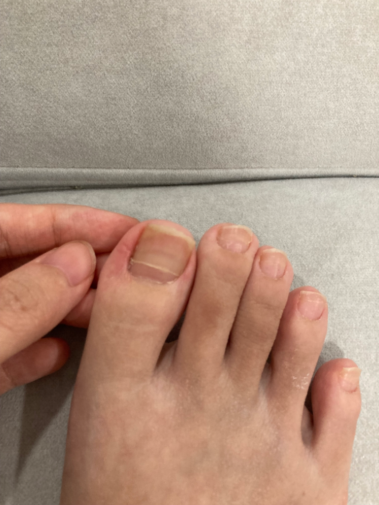 왼쪽발톱은 괜찮은데 오른쪽엄지발톱이 이중으로 되있는데 영양부족인가요 아니면 무좀인가요? 한쪽발톱만 저렇습니다 알려주세요