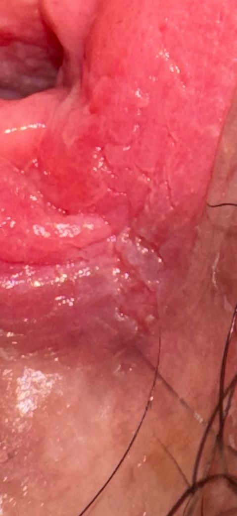 사진상으로는 질 입구 아래쪽(회음부)에 마찰이나 당김으로 생긴 표재성 균열로 보입니다. 성관계 후 흔히 발생할 수 있으며 통증, 출혈, 진물, 점점 커지는 붉은기나 부종이 없다면 대부분은 1–2주 내 자연 치유됩니다. 해당 부위는 피부가 얇아 건조하거나 윤활이 부족한 상태에서 쉽게 갈라질 수 있습니다.