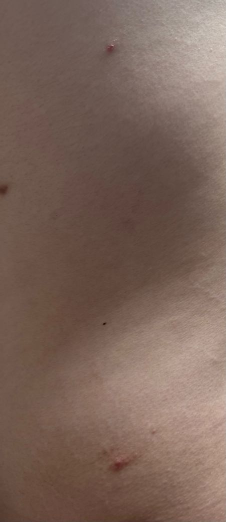 등에서 시작된 붉은 피부염(?) 및 발진이 허벅지, 옆구리, 복부 등으로 점점 번지고 있습니다.