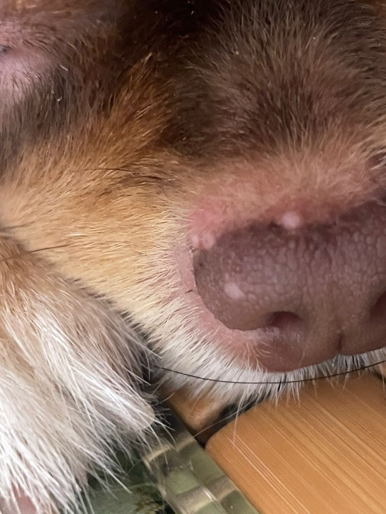 3살 암컷 장모치와와 강아지가 코에 뾰루지가 났습니다