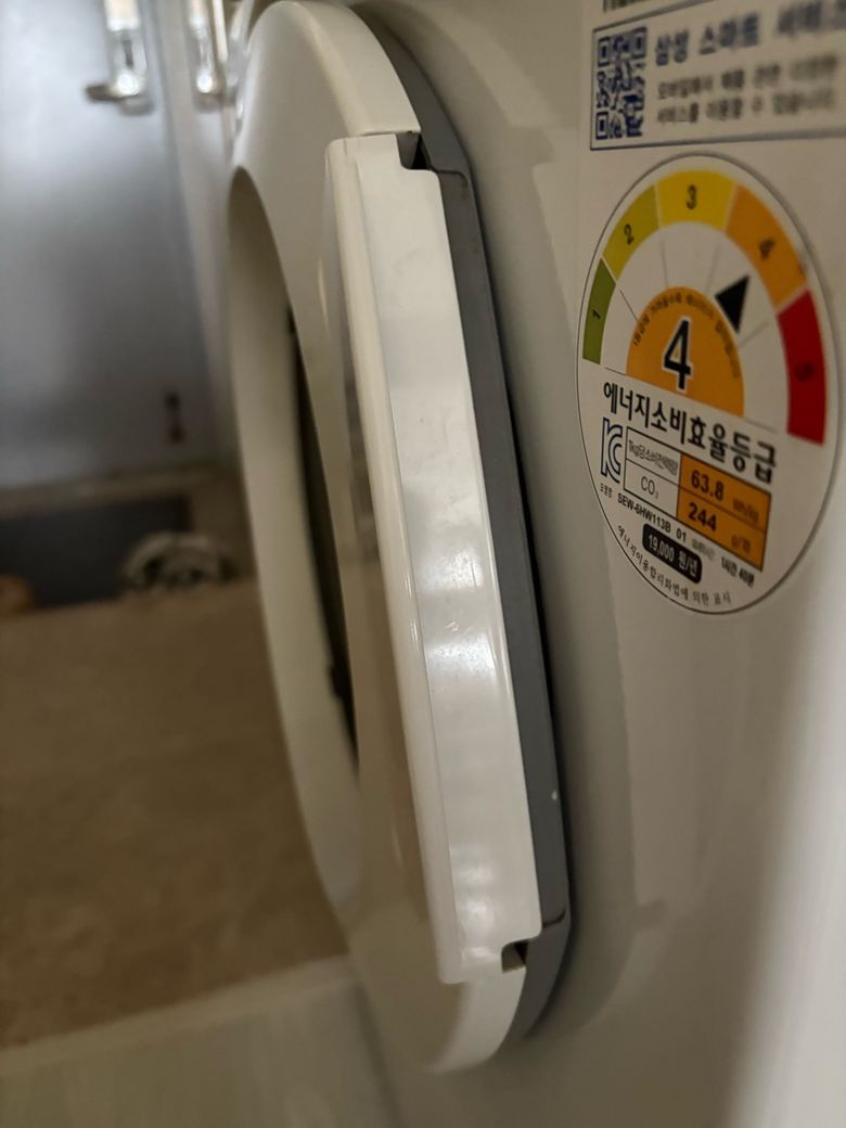 세탁기 문 손잡이 부분 플라스틱이 꺠진 것 같습니다. 현재 빨래가 돌아가는 상태라면 전원을 끄면 문 잠금 떄문에 바로 열리지는 않을 가능성이 높습니다. 세탁이 끝나고 문이 자동으로 잠금 해제되면 열수 있지만, 손잡이가 부러진 상태라 정상적으로 잡아 열기 어려울 수 있습니다.