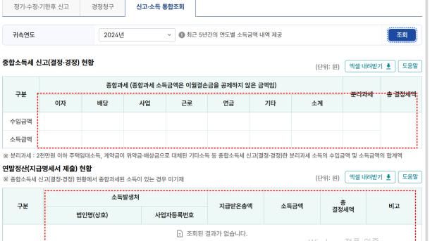 2024년도 "근로소득"이 조회가 안되어 글을 올립니다.