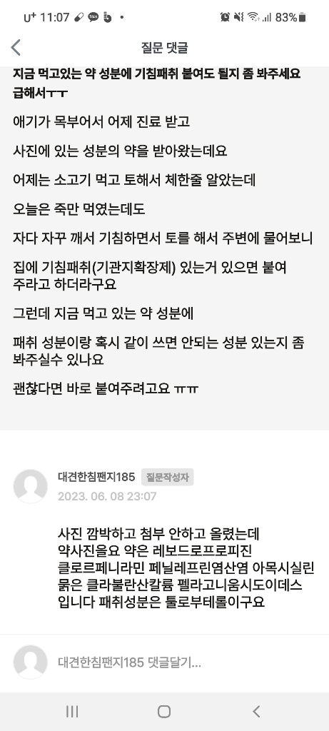 하지만 토를 하는것은 기관지확장을 시켜주는 패취제를 붙여도 효과가없을수 있습니다.