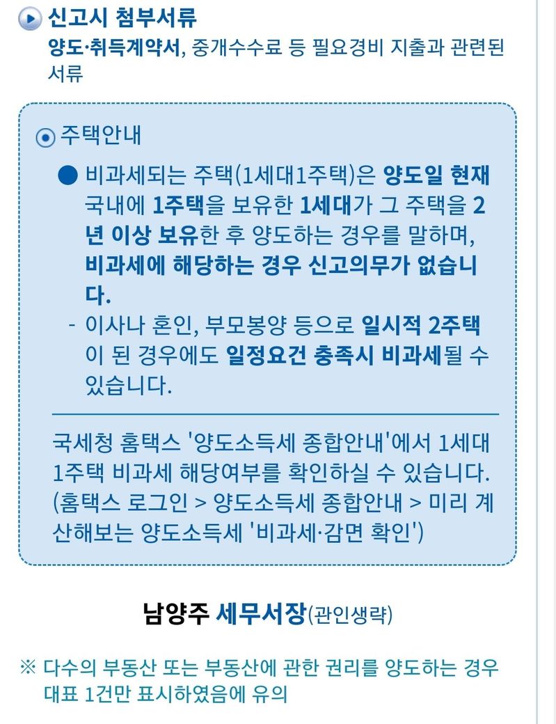 1주택 1가구에서 매매했을 때 양도소득세 신고 해야하나요?