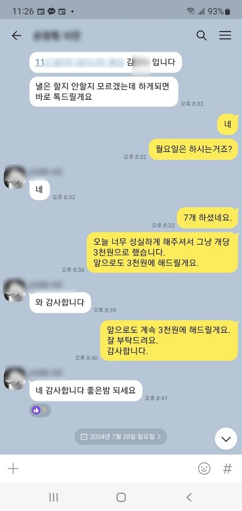 그리고 1천원 더 얹어주신건 사실인지 아닌지 모르고요 다른분이랑 일할 때 얼마 주셨는지 사실확인도 안되고 그래도 그건 감사하게 생각합니다. 근데 그거 사진 하나 3천원인데 하나 중개되면 몇백만원 버시잖아요. 머 그냥 애교수준이죠.’