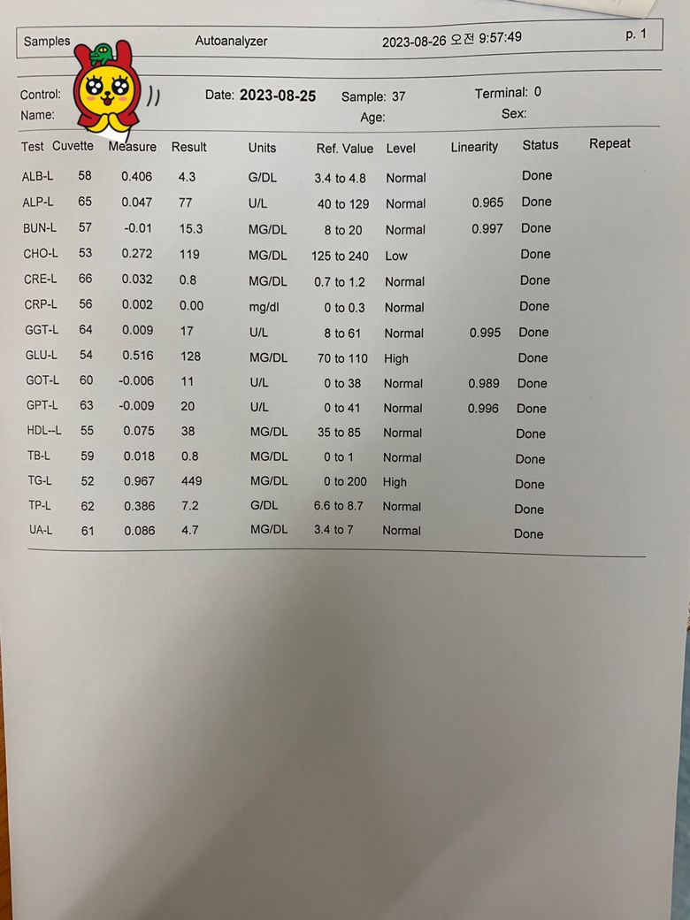 제 건강 상태가 어떤가요? 피검사 수치 있습니다.