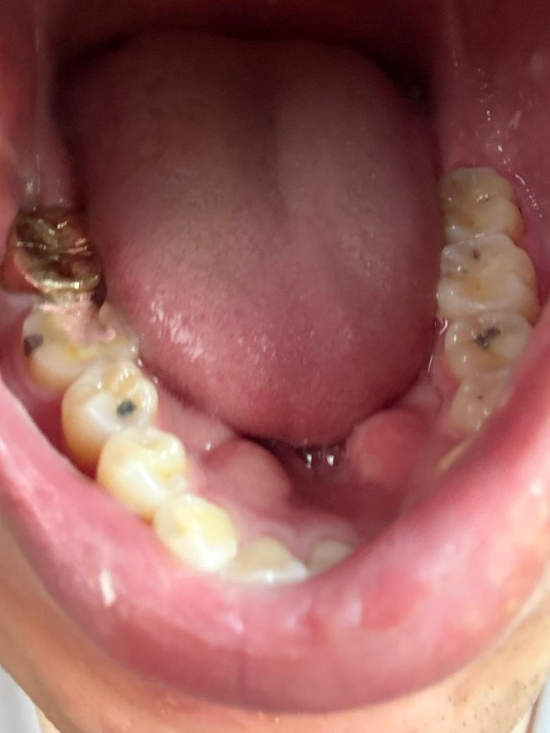 신경치료를 하고나서 임시로 메꿔놓은 재료가 살짝 떨어진거 같습니다. 완전히 떨어진건 아니니 너무 걱정하지 않으셔도 될것같습니다.
