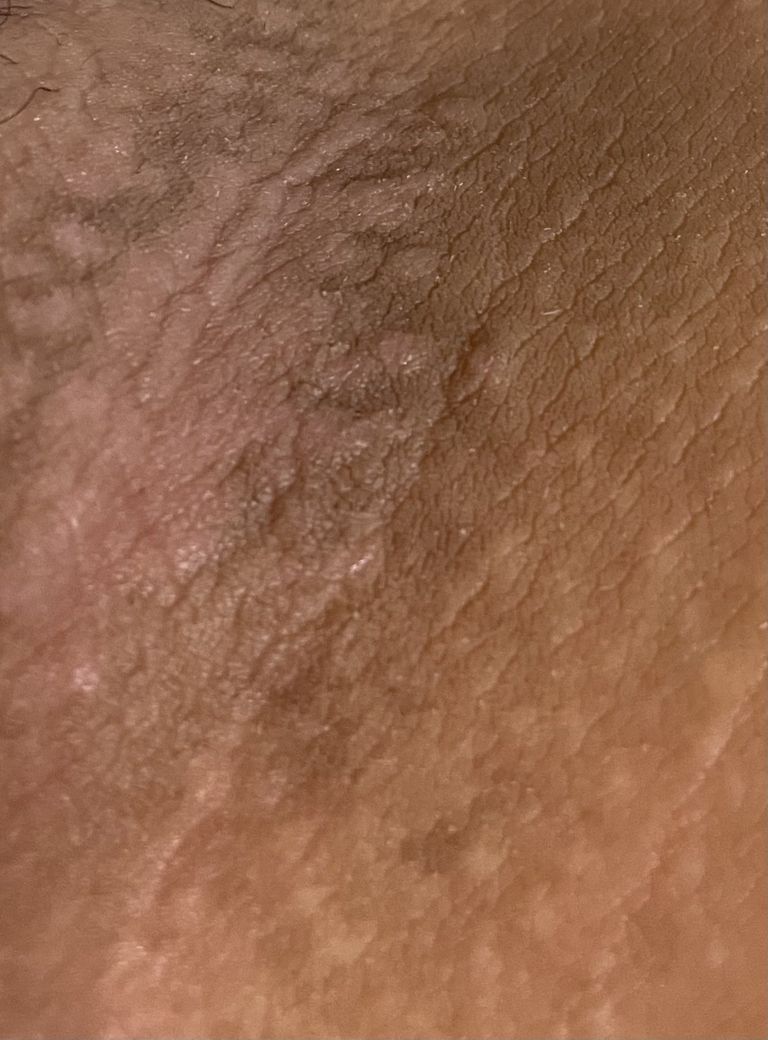 가려워서 몇번 긁었고, 파가 난적도 있습니다. 근데 어느샌가 다른부위와 피부색이 달라졌고 다른 피부를 만진것처럼 울퉁불퉁한 느낌이 들어요. 피부과 가기에는 시간이 많은 편이 아니라 약을 바르고 싶은데 어떤 증상일까요? 백선 완선 습진 이거중 하나일까요?