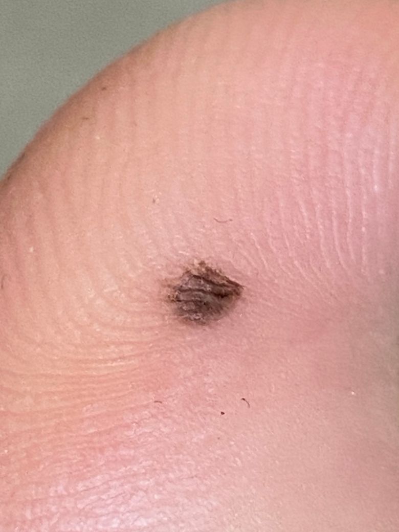 이 점이 생긴건 1년 정도 넘었는데 크기는 직경 4mm정도 입니다. 인터넷 찾아보니 갑자기 발이나 손에 점이 생기면 흑색종일 수도 있다고 해서 불안해서 질문 하게 되었습니다.