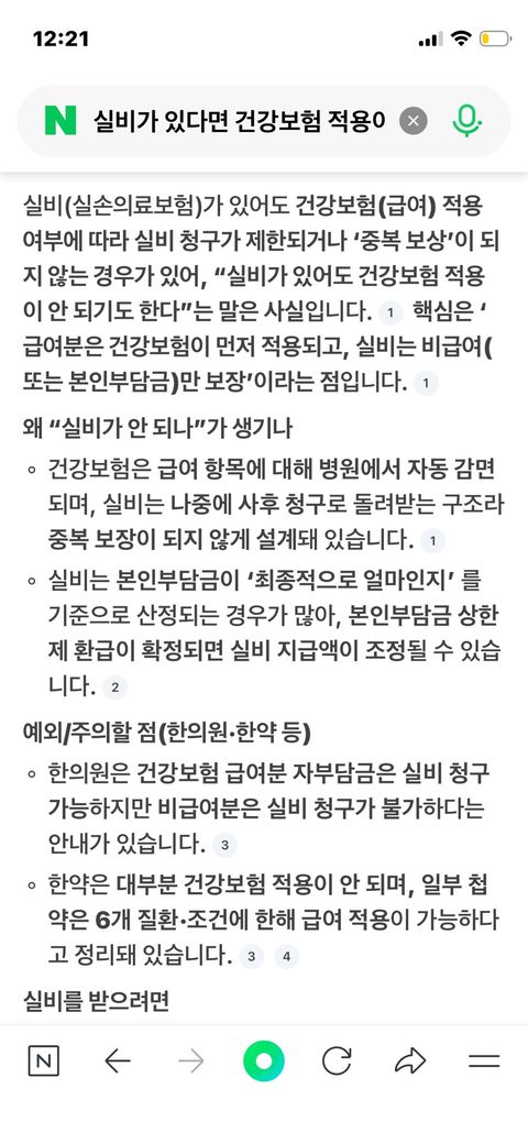 실비가 있다는 이유로 건강보험을 못 받을 일은 없습니다. 국민건강보험은 병원에서 결제 시점에 자동 적용되며, 실비보험은 추후 서류를 제출하여 청구하는 구조입니다. 사진에 나온 정보는 틀렸으니 무시하시길 바랍니다. AI가 쓴 글입니다.