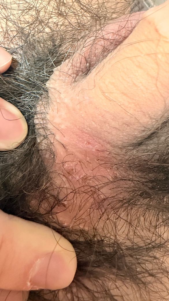 사진과 증상을 종합하면, 가장 가능성이 높은 것은 접촉성 피부염이나 마찰성 습진에 염증이 겹친 상태입니다. 음경과 사타구니 접합부는 습기와 마찰, 땀이 많은 부위라 짧은 기간에도 급격히 악화될 수 있습니다. 갑자기 개수가 늘고 자극 시 통증이 심한 점도 이와 맞습니다.