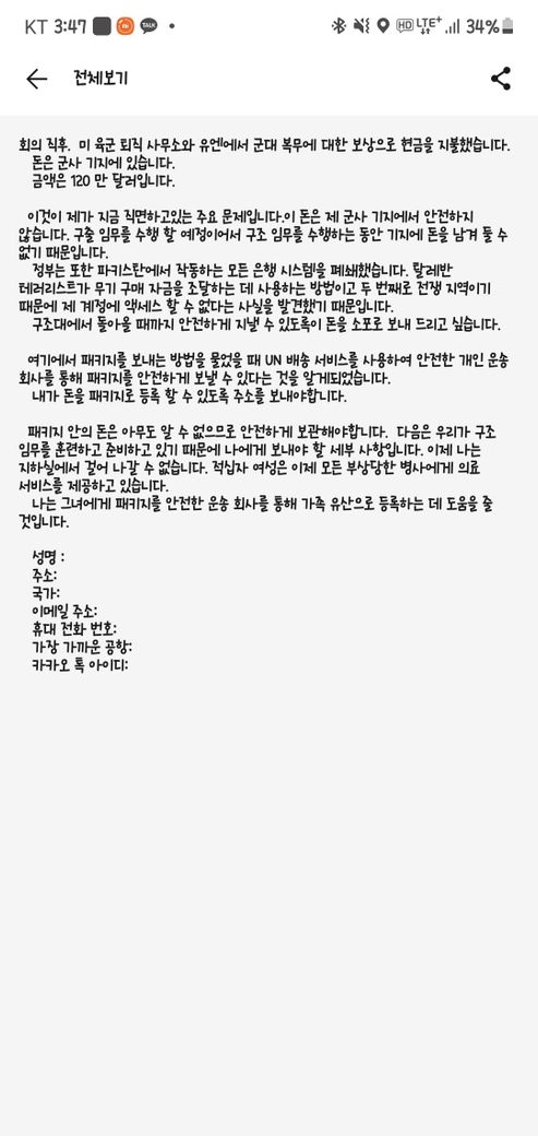 해외에 아는 지인이 소포로 현금을 보낸다는데...