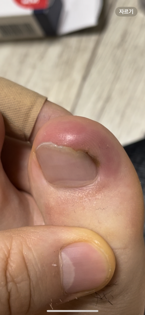부은 부위에 아마도 발톱이 남아 있어서 살을 계속 찌르는 것 같아요