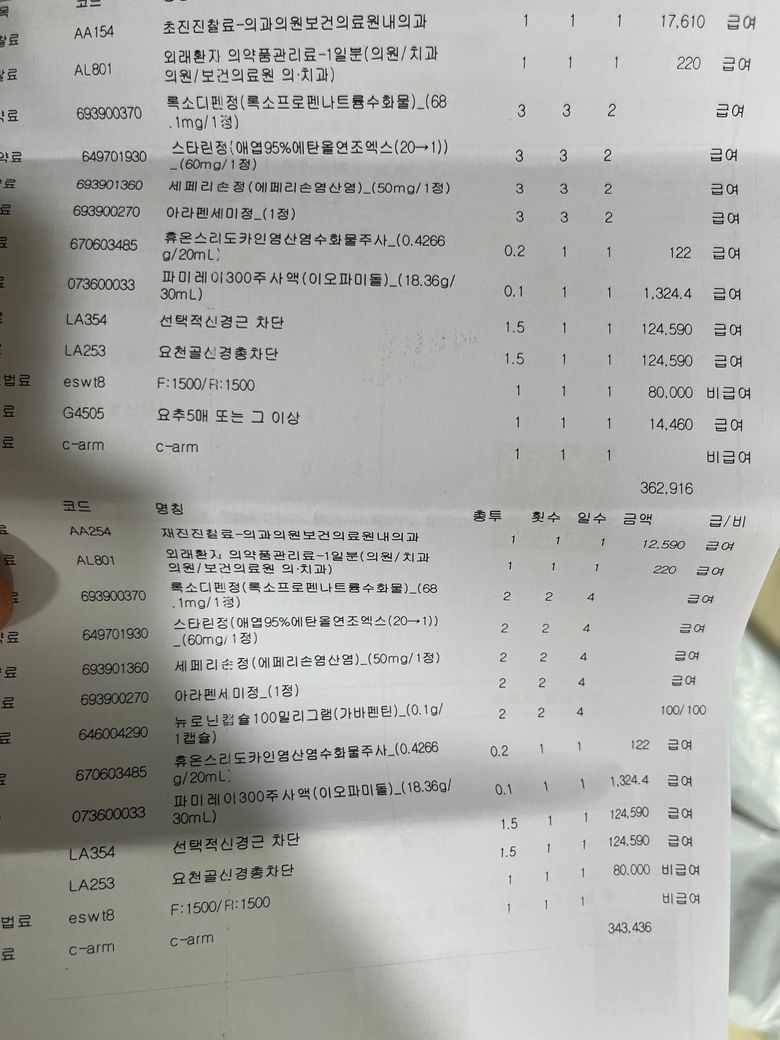 그리고 29일 수요일 다시 주사 치료 및 물리치료를 받았습니다.