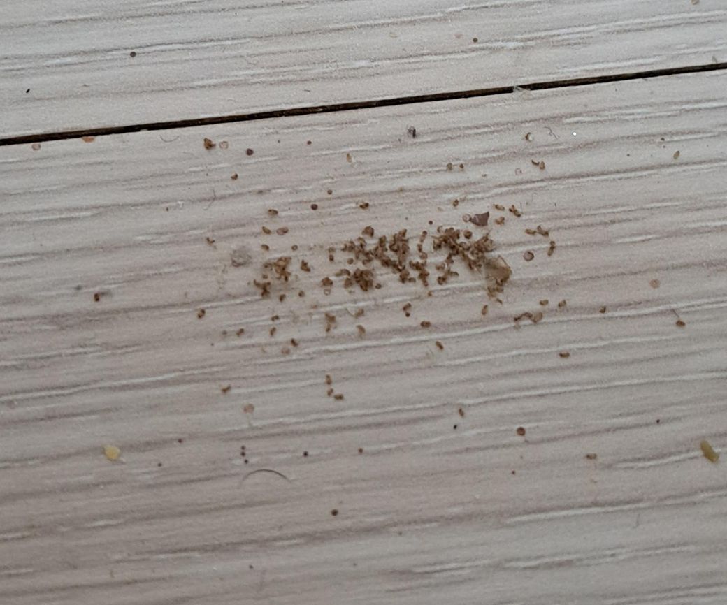 침대 프레임 근처에서 기어다니는 검정벌레 한마리를 발견후.... 근처 대청소 하던중 위 사진과 같은 알무더기?같은 것을 발견했습니다.