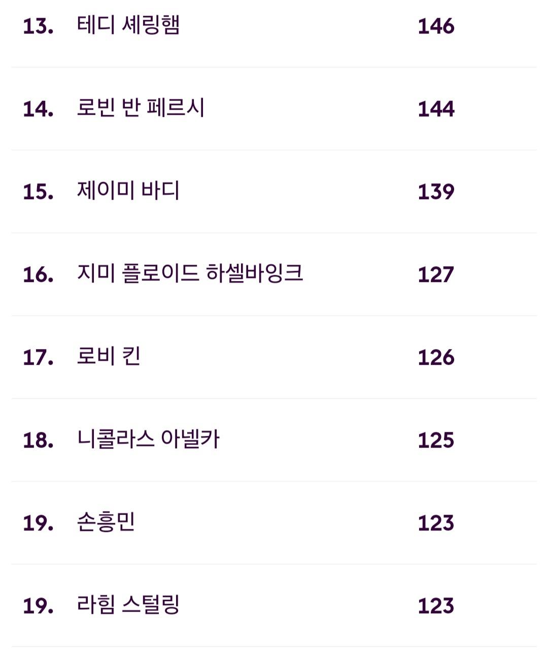 이번 시즌에 평균적인 득점능력을 보여준다면 16위까지는 올라갈 걸로 보입니다.