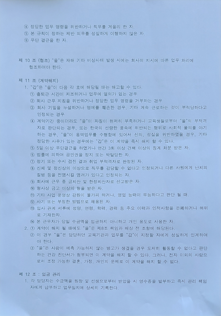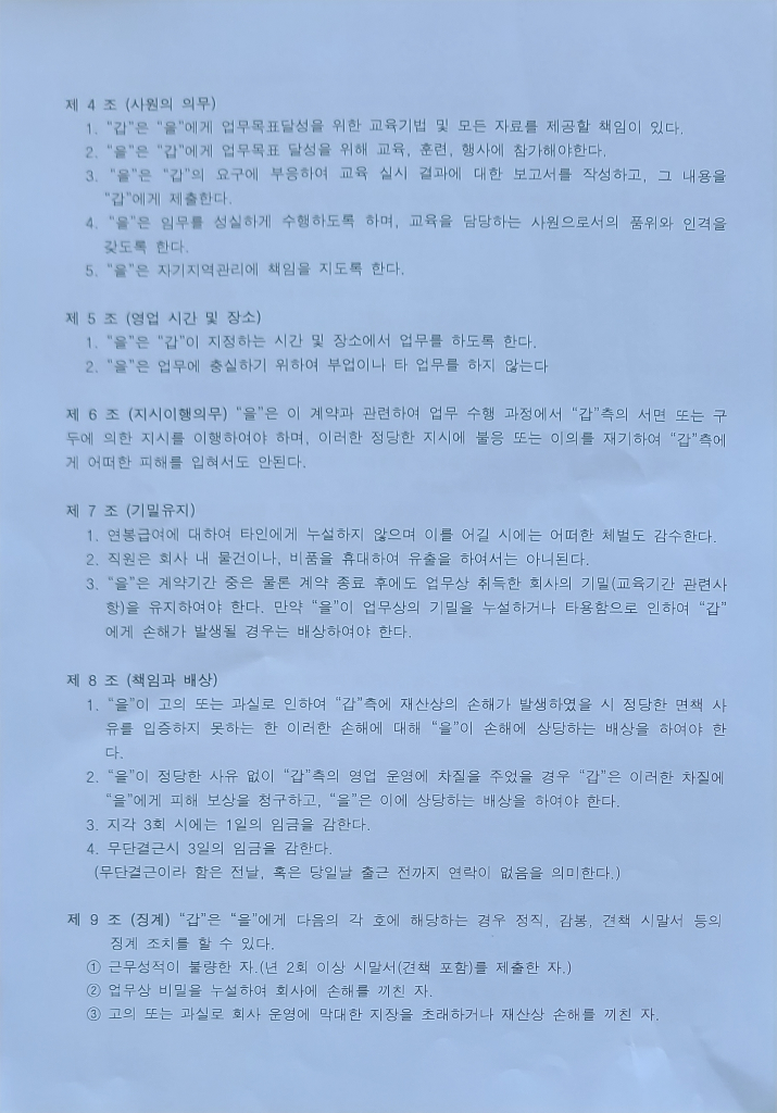 무단 퇴사시 손해배상 조항이 있더라도 실제 손해가 입증되지 않으면 손해배상의무가 인정되지 않습니다. 실제 근무 내용이 계약서와 다를 경우 근로계약 위반이 될 수 있으며 정규직임에도 계약기간이 있다면 정규직이 아닌 기간제로 보아야 합니다. 근로계약 위반에 해당할 수 있습니다