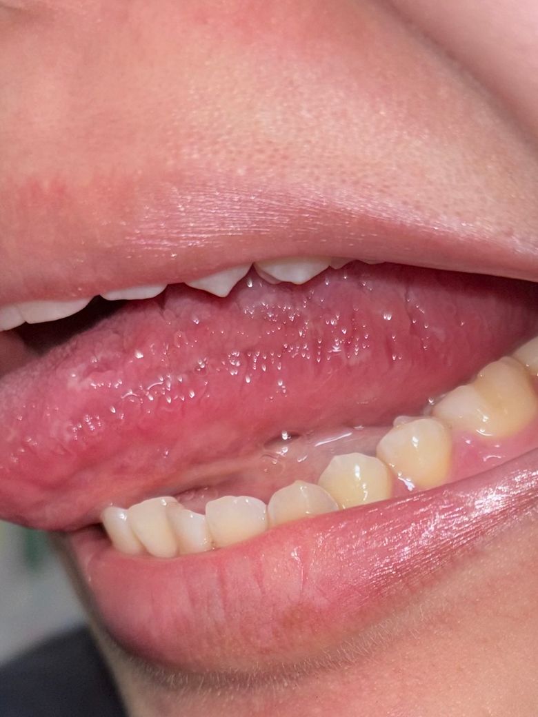혀 측면이 갈라지고 침삼킬때 통증있어요