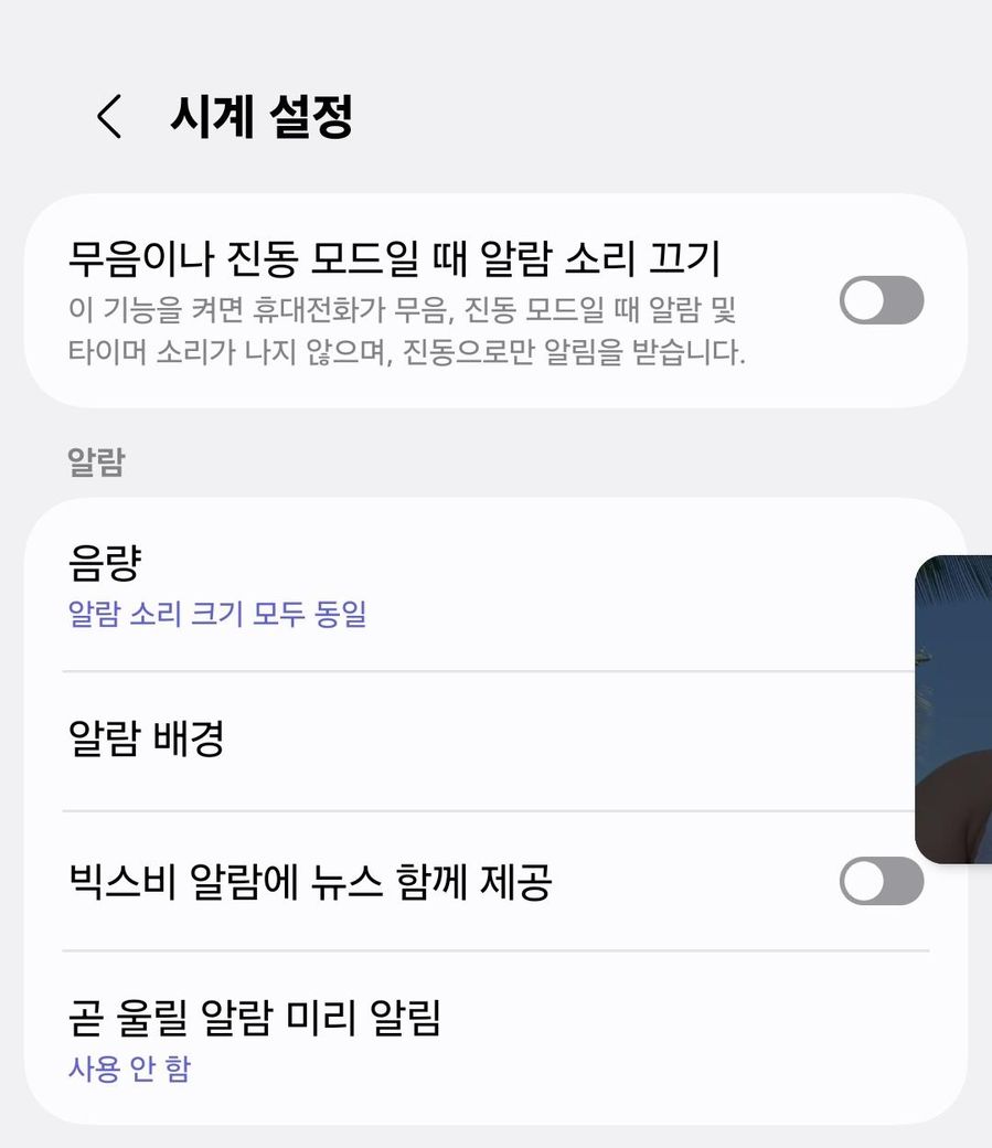 이렇게 되어있는데 아침에 알람이 울릴 때마다 빅스비인가 날씨가 몇도인지 알려줍니다ㅠㅠ 꺼져있어도 저러니 미칠거같아요 방법 제발 알려주세요