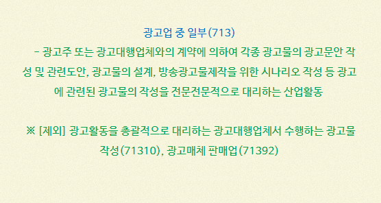사진 밑에 [제외]를 보면 광고대행업체서 수행하는 광고물 작성과 광고매체판매업은 불가능하다고 나와있어서