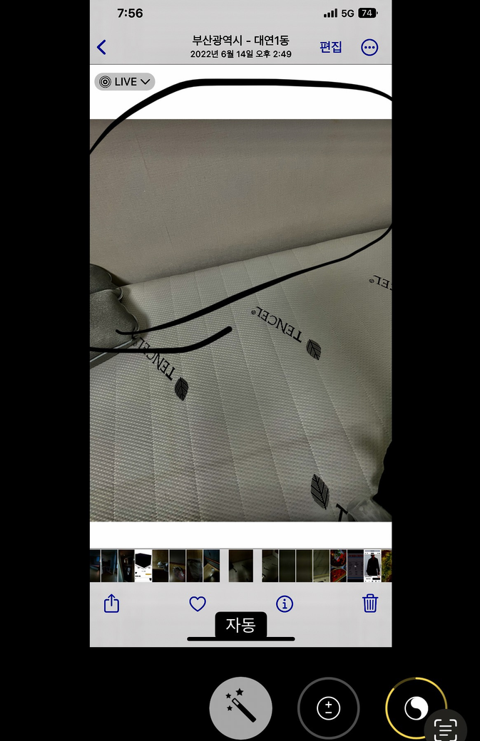 표시부분 약간 파란빛 나는거 무늬 내가 이사 첫날에 찍은 사진이고 침대랑 닿아있는 부분쪽에 검정선처럼 연하게 있는거같은데
