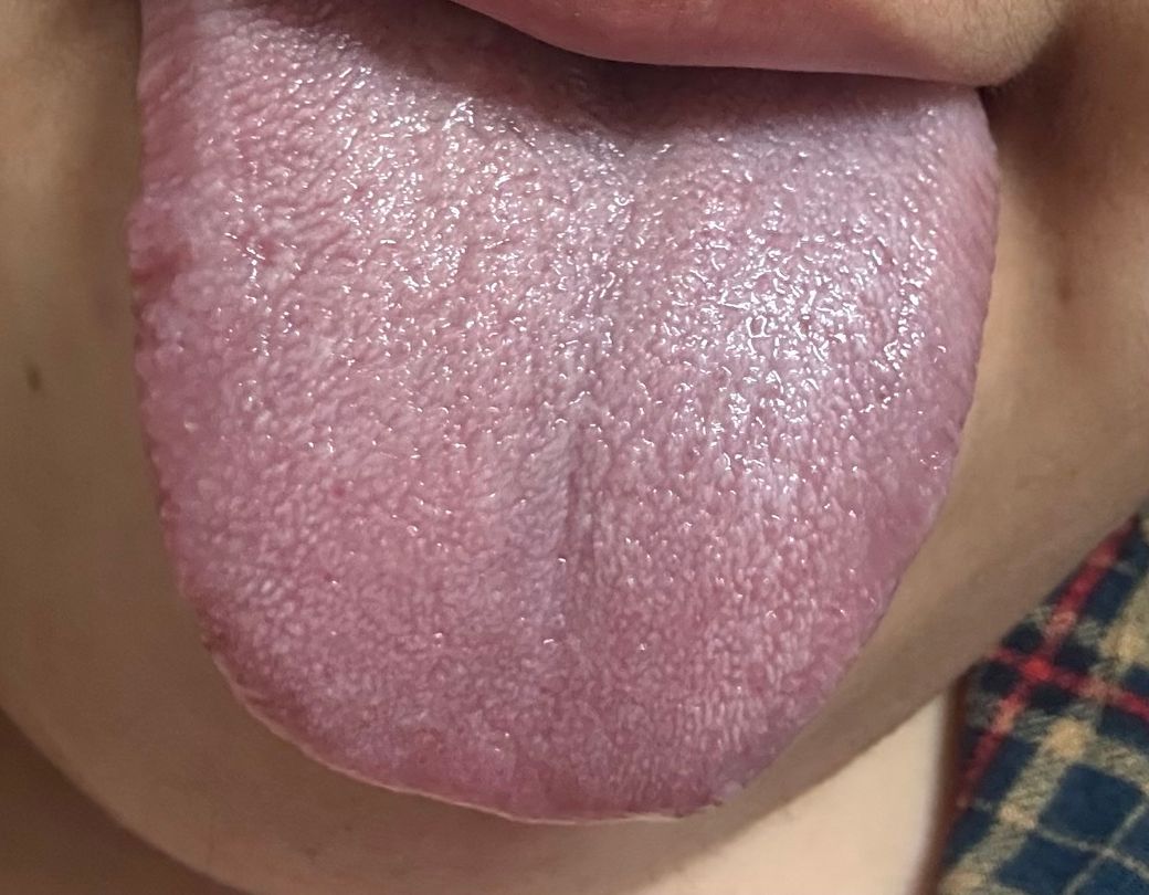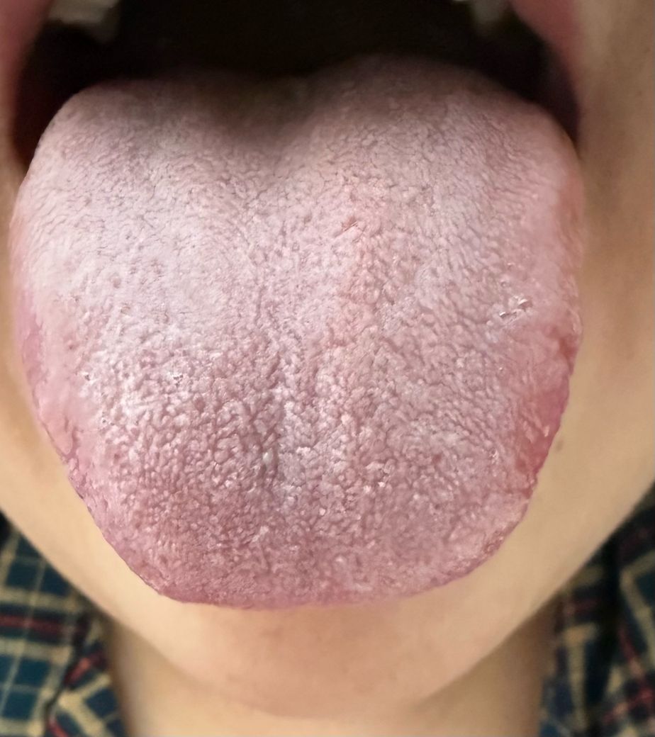 두 번째로 흔한 원인은 구강건조와 설태 증가입니다. 침 분비가 줄거나 수면 부족, 수분 섭취 부족, 카페인 섭취가 많으면 설태가 두꺼워지고 혀 표면이 까칠하게 느껴질 수 있습니다. 사진에서도 설태가 약간 증가한 양상이 보입니다.