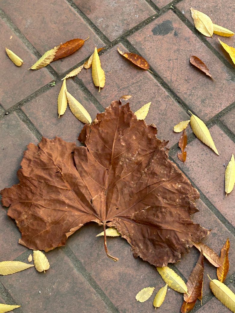 말 그대로입니다 길거리에서 주운 잎인데 크기가 커서 깜짝 놀랐네요 이건 무슨 나무의 잎인가요? 거의