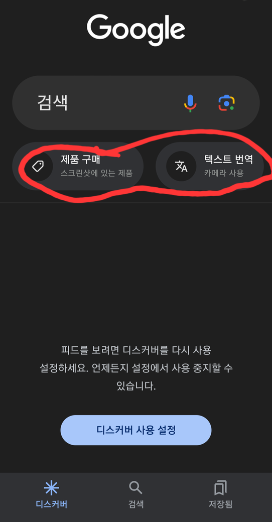 원래는 안 이랬는데 어제부터 구글 앱을 실행하면 중간에 이런 메뉴가 나오네요..
